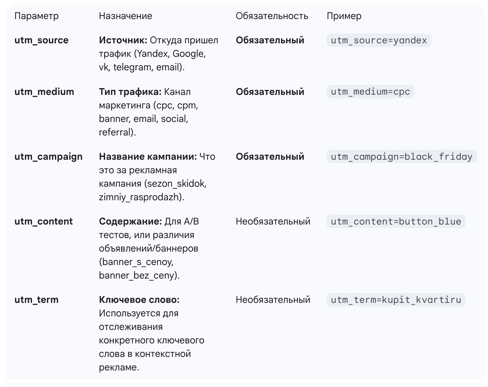 1. Структура и обязательные параметры UTM